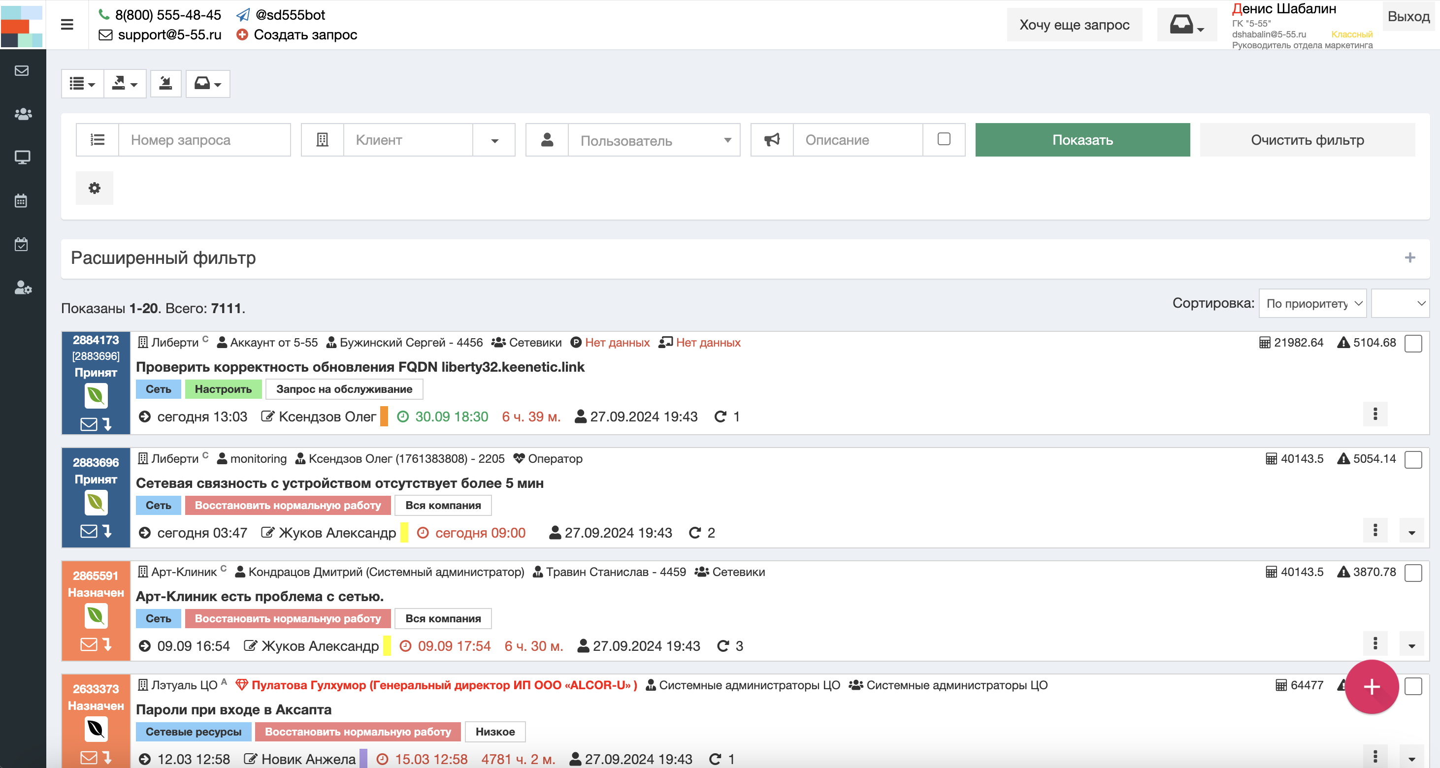 Примем обращение и распределим между исполнителями, проверим ход выполнения согласие SLA